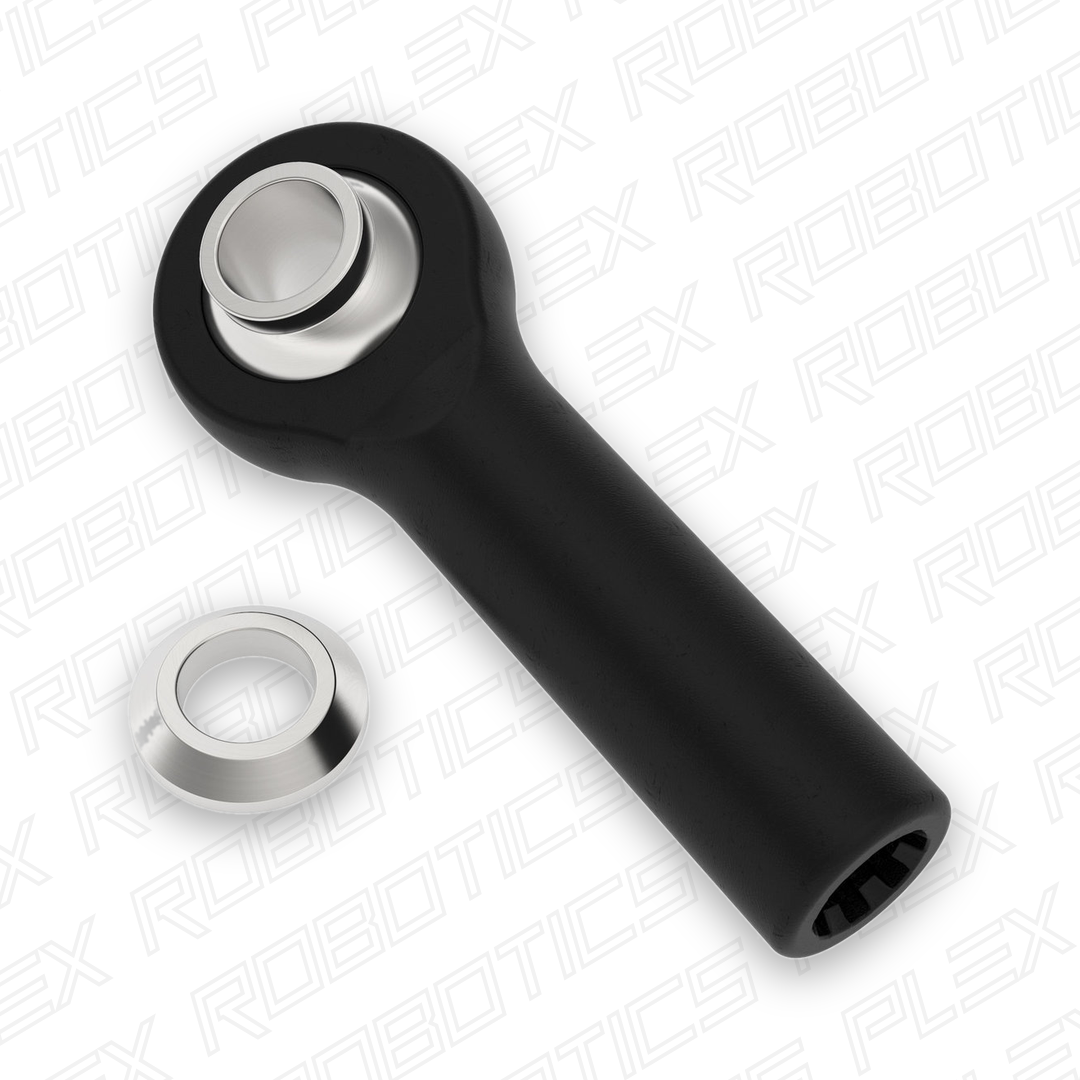 This nylon ball linkage has a female shank which allows an M4 fastener or threaded rod to form threads as it’s inserted.  The steel ball end is able to swivel freely inside the nylon body so that your linkage assembly transfers the force acting on it without robbing unnecessary power.  The included cupped washer can be used in order to increase the range of motion by adding clearance between the body and the fastener that is used to attach the ball to your control surface.