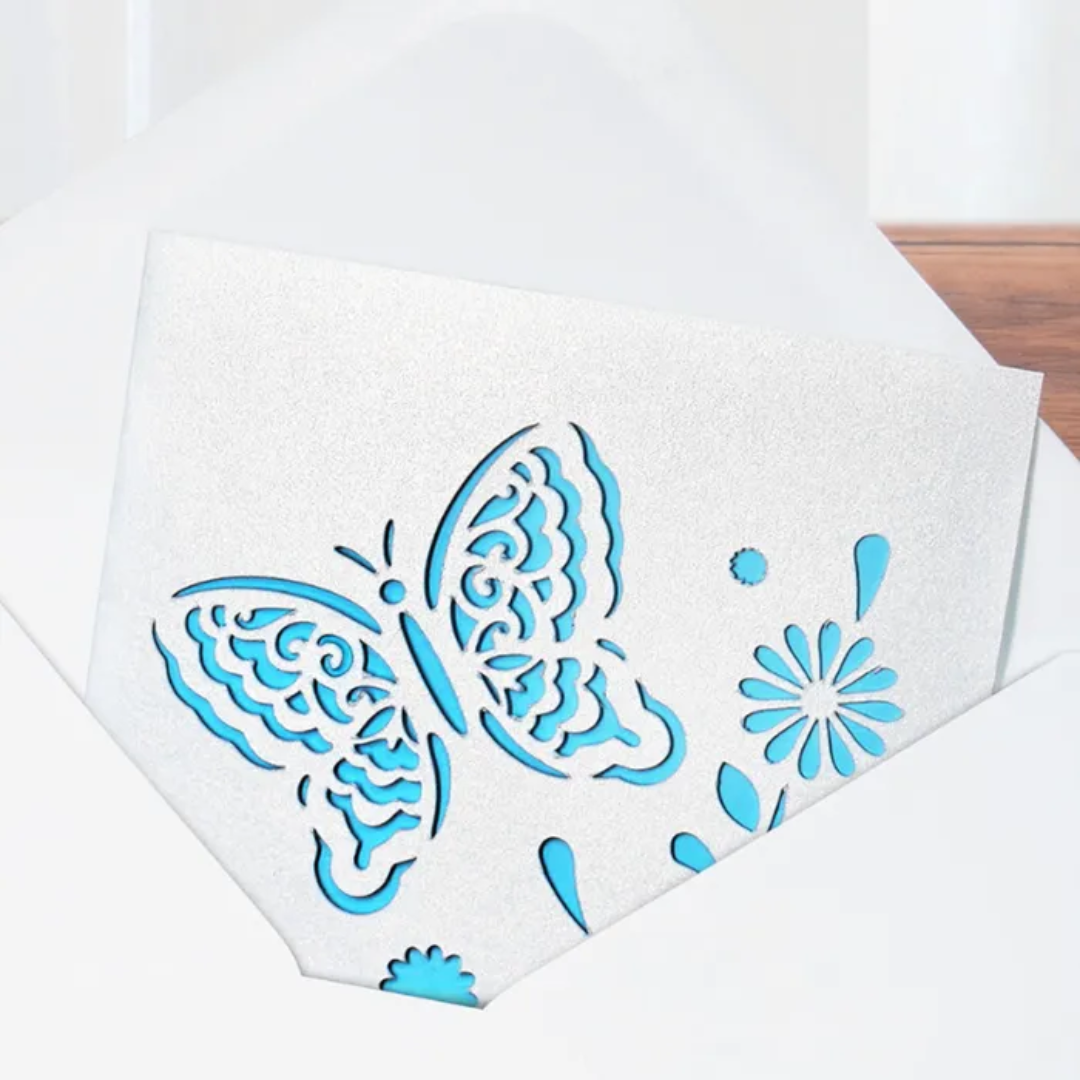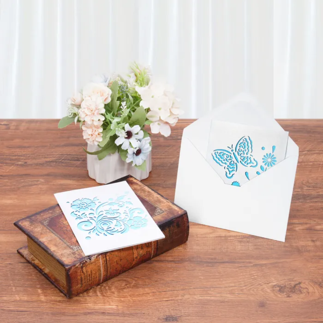 Bambu Greeting Card Set includes 2 pearlescent white card stocks for intricate blade cutting, paired with 2 sky-blue inner cards for your heartfelt messages, and comes with the matching envelopes! Whether it's a birthday, holiday, wedding, or any special occasion, this set allows you to craft personalized, one-of-a-kind cards that truly stand out. The beautiful pearl shimmer on the cards adds elegance to your work. Design your wishes and make every celebration unforgettable with the Bambu Pearlescent White Greeting Card Set!