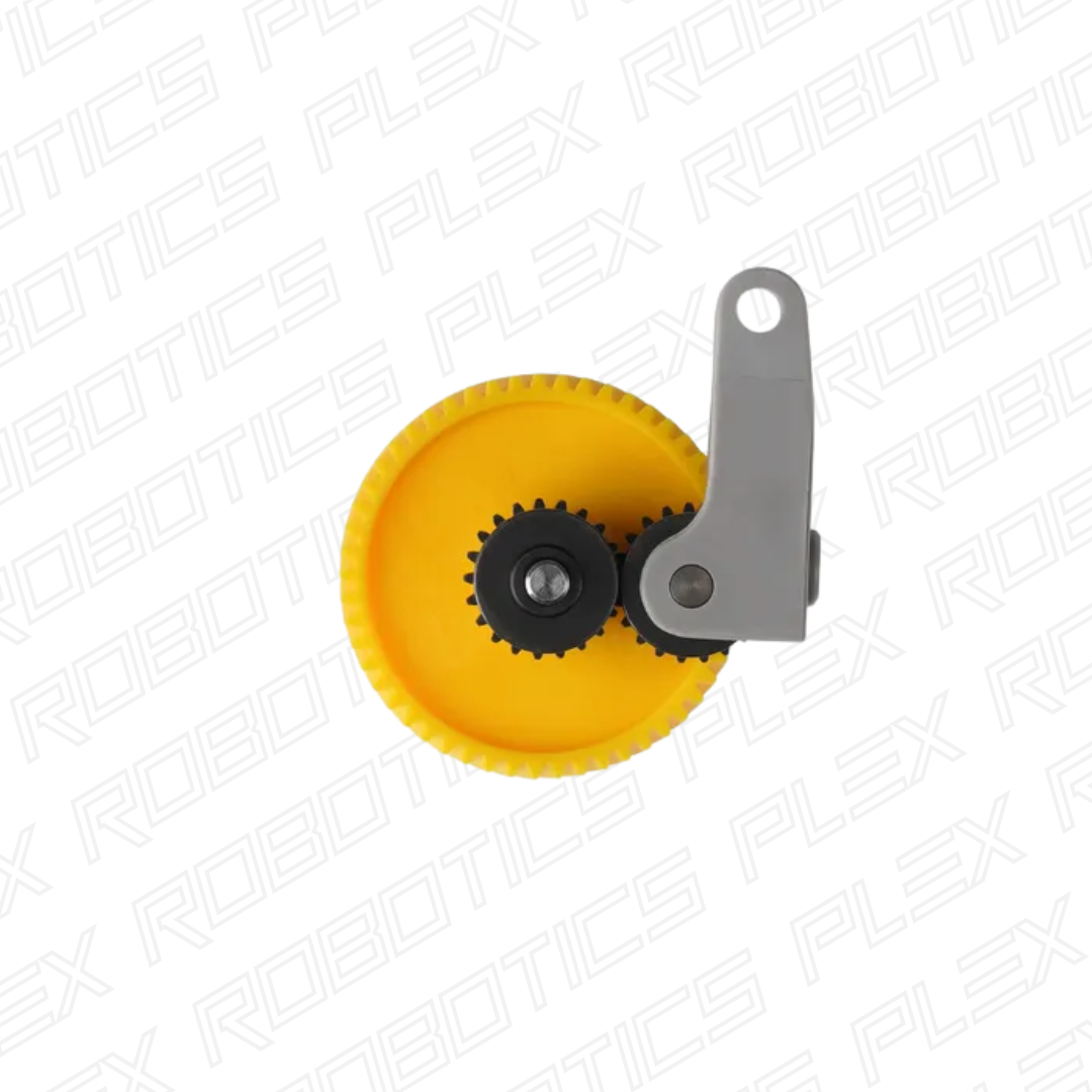 The hardened steel extruder gear assembly is an internal component of the hardened steel extruder unit. It comprises a driven gear and an active gear that work together to feed filament into the hotend.