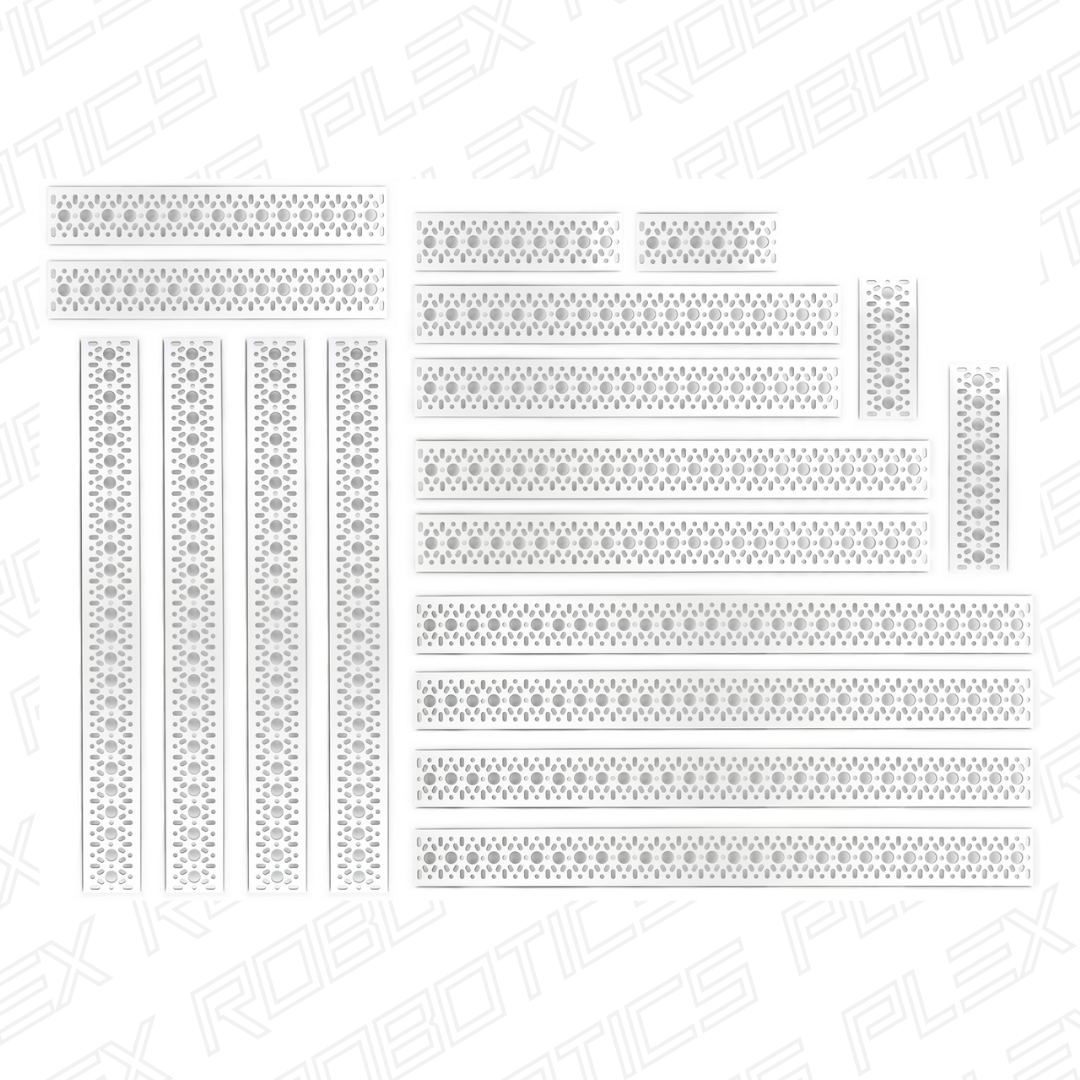 The C Channel Bundle contains various lengths of 45mm x 15mm C Channel and is designed to work seamlessly with existing DUO 15mm Extrusion. They can be used in locations where additional torsional strength is required. The 45mm wide side of the channel features the Extended Motion Pattern which uses M3 hardware for attaching brackets, extrusion, and channel together. Locations for mounting bearings, shafts, motors, and servos are available every 16mm. Slots on the 15mm sections of the channel accept standard M3 hex-head bolts or nuts, rather than expensive t-nuts. Use this bundle to restock your existing C Channel supply, or as a great starting point for a new FTC team.