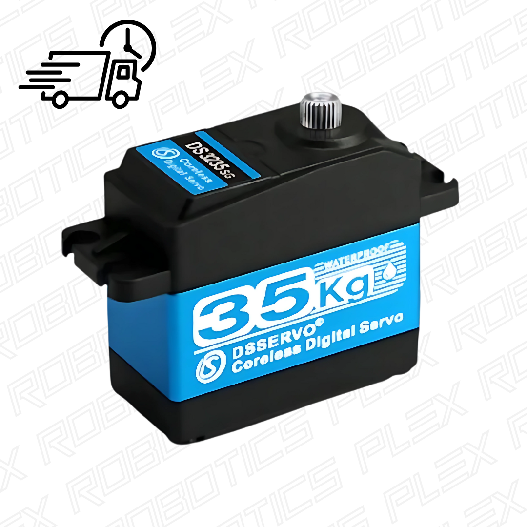 The DSServo DS3235SG is a high-performance waterproof servo designed for 1/10 and 1/8 scale RC vehicles, including crawlers, buggies, and trucks. It features precision potentiometers and a high-resolution digital chip, providing smooth, interference-free control. With a full IP66 waterproof rating, this servo is well-suited for water game challenges and wet environments. Its stainless steel and aluminum geartrain ensures reliable durability under demanding conditions, while the coreless motor offers fast response, high speed, excellent efficiency, and reduced power consumption—delivering a top-tier experience in both RC and competitive robotics.