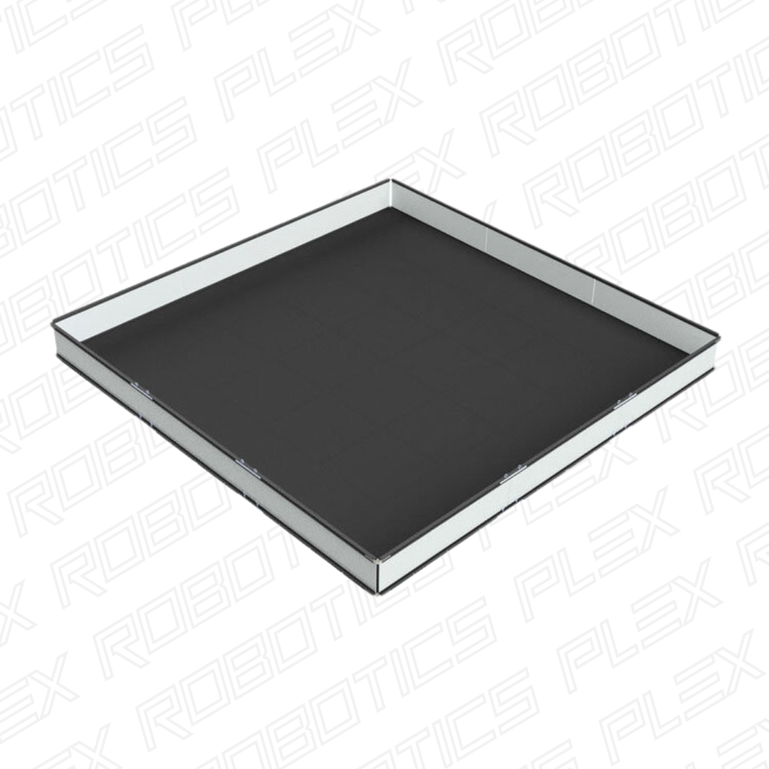 This is the official FIRST Tech Challenge Perimeter. This perimeter may be referenced as am-0481, am-0481a, or am-0481b in documentation. This is reusable from year to year and does not include soft tiles, game-specific hardware, components, or game pieces. This "b" revision is compatible with the previous "a" revision, meaning "b" version corners and panels can be used as replacement in "a" version perimeters.